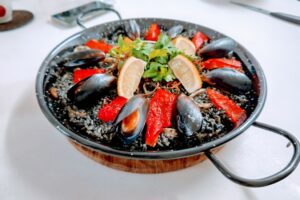 カルディのパエリアの素とイカ墨ペーストを使い、美味しいパエリアを作ってもらいました