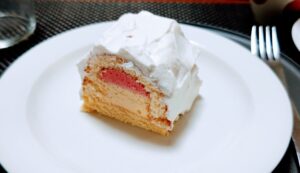 今月のケーキは、「フランボワーズとアングレーズのムース」と「ファーブルトン」です